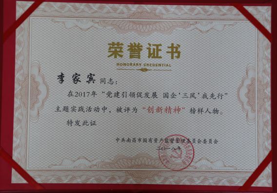 在2017年度國資委組織的“黨建引領促發(fā)展 國企“三風”我先行”主題實踐活動中,陳國明同志被評為“優(yōu)秀工作者”,李家兵同志被評為“創(chuàng)新精神”榜樣人物,徐棽同志被評為“工匠精神”榜樣人物。