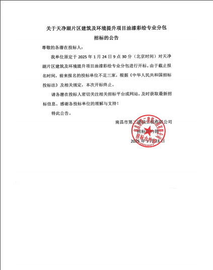 關(guān)于天凈湖片區(qū)建筑及環(huán)境提升項(xiàng)目油漆彩繪專(zhuān)業(yè)分包招標(biāo)的公告