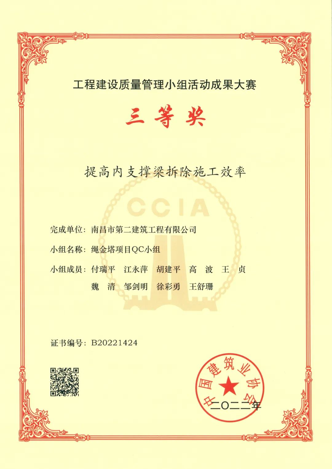 近日,公司繩金塔項(xiàng)目QC小組在2022年全國工程建設(shè)質(zhì)量管理小組活動成果大賽評選中榮獲三等獎。