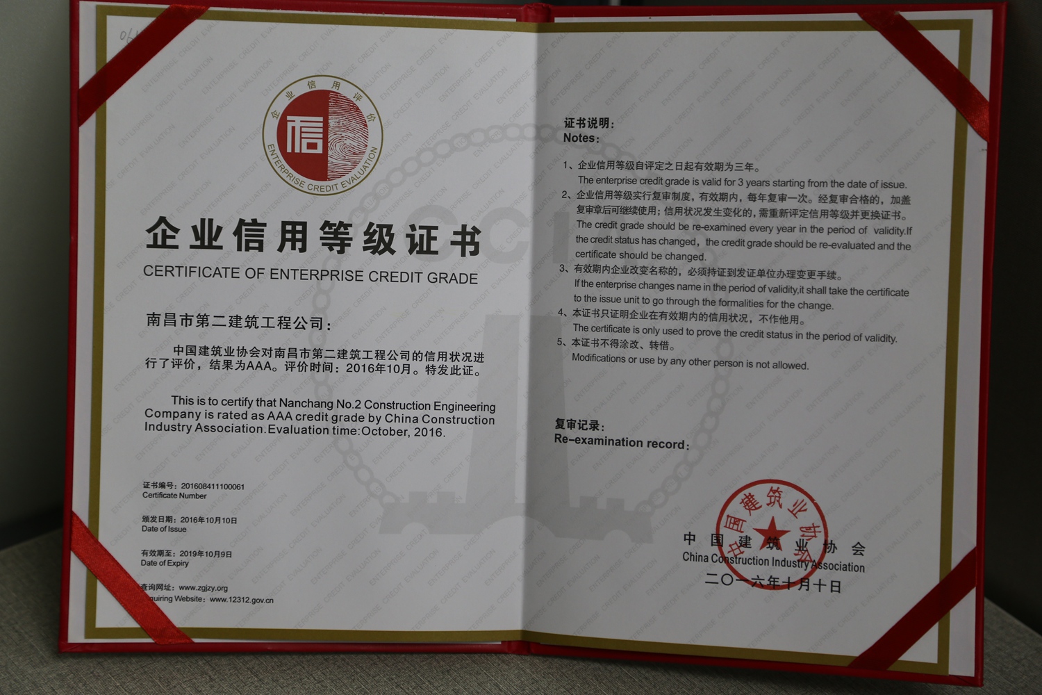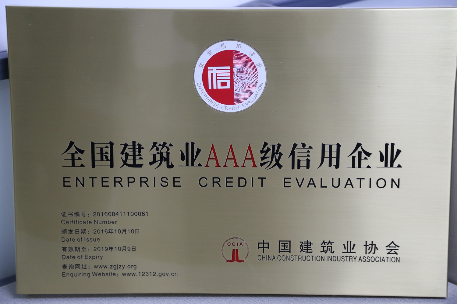 企業(yè)信用等級是由中國建筑業(yè)協(xié)會經(jīng)審核、篩選和評定而確定的,有效期3年,每年復(fù)審一次。由于公司一直本著誠信、服務(wù)、質(zhì)量為上的原則,獲得了中國建筑業(yè)協(xié)會及社會大眾的認(rèn)可,2016年10月公司再度榮獲“AAA級信用企業(yè)”的榮譽(yù)稱號。這個全國建筑行業(yè)都為數(shù)不多的榮譽(yù)是對我們企業(yè)的肯定及嘉獎,讓我們樹起信譽(yù)旗幟,再創(chuàng)輝煌,攜手走得更好、更遠(yuǎn)。