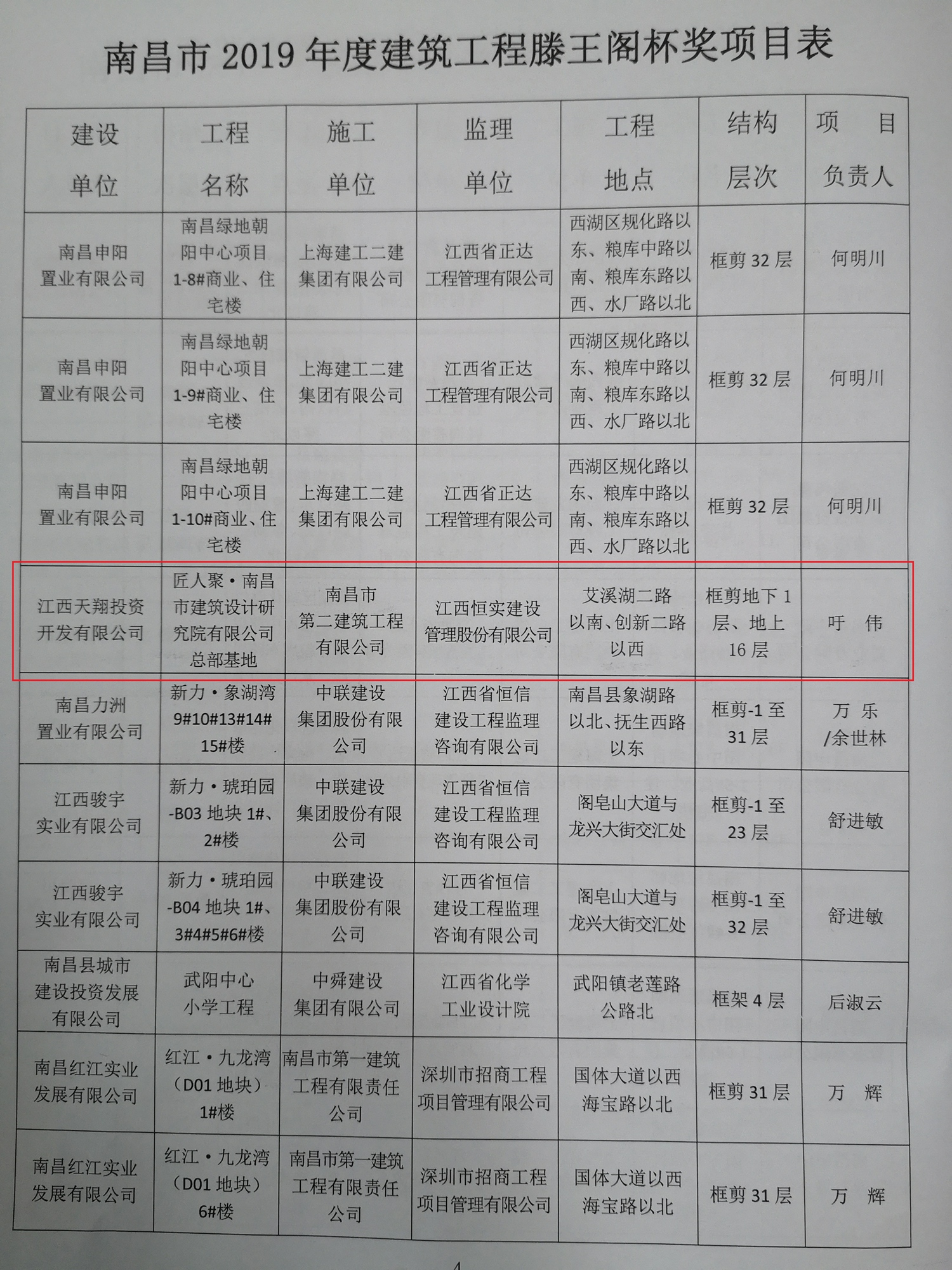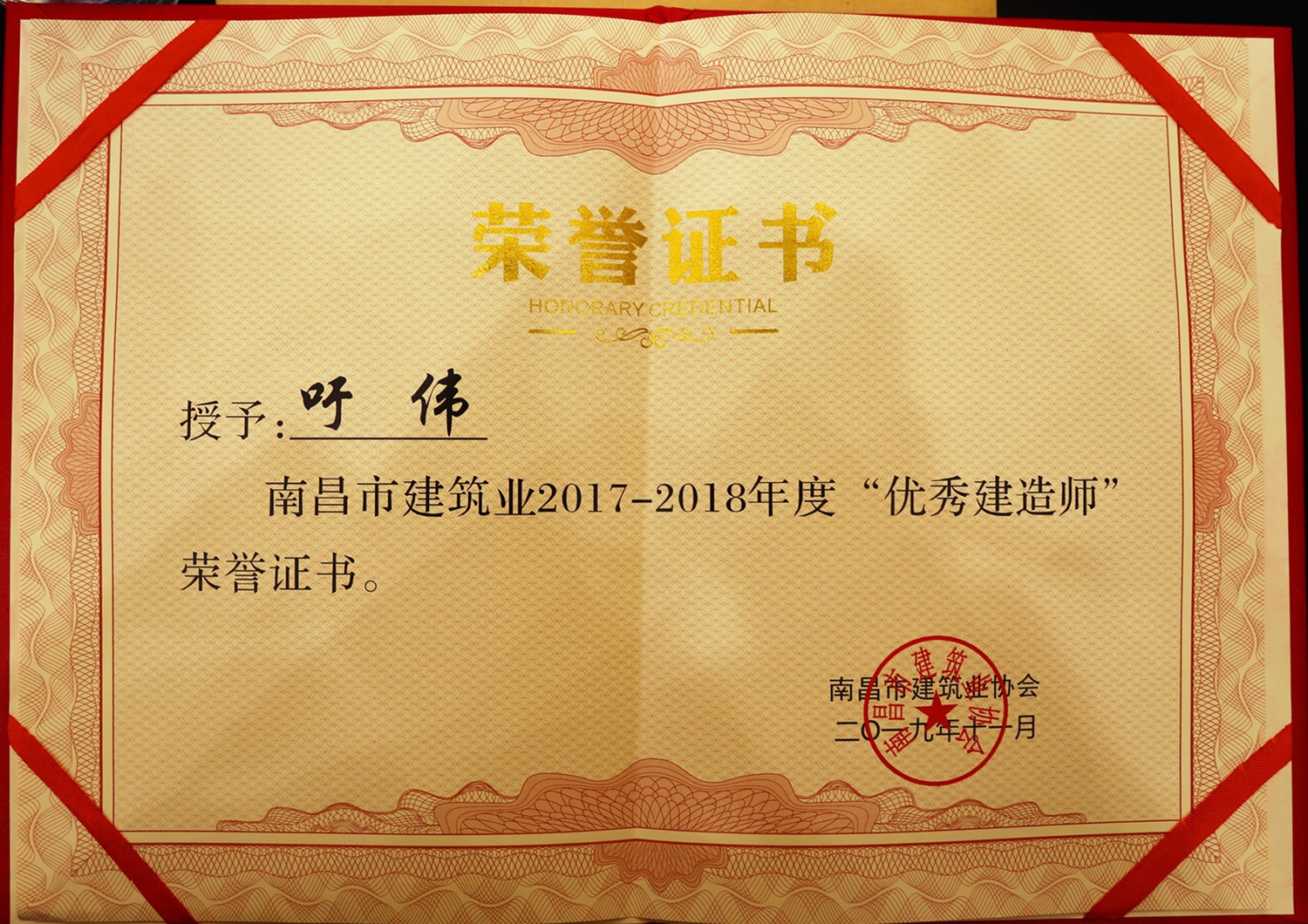 會(huì)上宣布了《關(guān)于表彰2017——2018年度南昌市建筑業(yè)先進(jìn)企業(yè)和優(yōu)秀建造師(監(jiān)理師)的通報(bào)》和《南昌市2019年度建筑工程滕王閣杯獎(jiǎng)表彰決定》,我司榮獲了先進(jìn)企業(yè)榮譽(yù)稱號(hào),吁偉同志榮獲了優(yōu)秀建造師榮譽(yù)稱號(hào),匠人聚.南昌市建筑設(shè)計(jì)研究院有限公司總部基地項(xiàng)目榮獲滕王閣杯獎(jiǎng)。